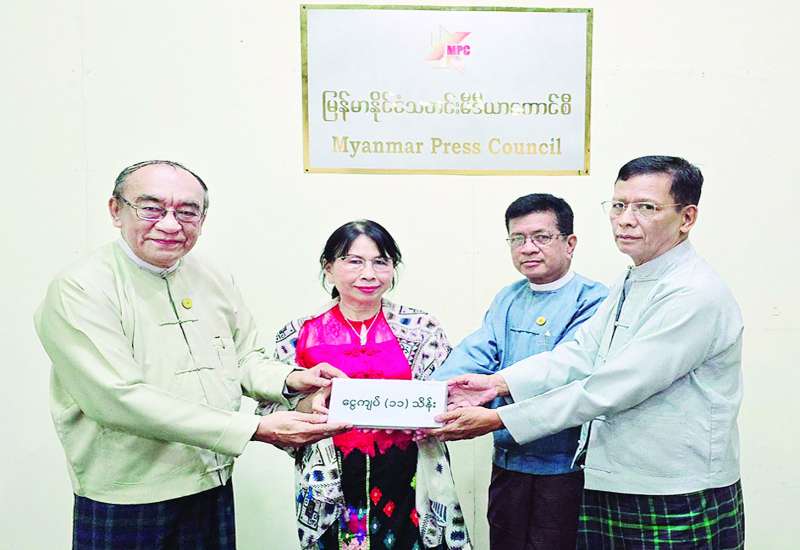သက်ကြီးသတင်းစာ ပညာရှင်ကြီးများအတွက် ပထမအကြိမ်ထောက်ပံ့ကူညီမှုများကို ယခုနှစ်ဇန်နဝါရီလက ပြုလုပ်ပေးခဲ့ပြီး ၂၀၂၆ ခုနှစ် ဇန်နဝါရီလတွင် ဒုတိယအကြိမ် ထောက်ပံ့ကူညီလှူဒါန်းမှုများ ပြုလုပ်ပေးနိုင်ရန်အတွက် အလှူငွေပေးအပ်လှူဒါန်းပွဲကို ရန်ကုန်မြို့ ကုန်သည်လမ်းရှိ မြန်မာနိုင်ငံ သတင်းမီဒီယာကောင်စီရုံးတွင် ယနေ့ပြုလုပ်ရာ စွယ်စုံမီဒီယာဂရု(ပ်)မှ ဒေါက်တာ တင်ထွန်းဦးနှင့် ဇနီးဒေါက်တာခင်မိုးမိုးတို့က အလှူငွေကျပ် ၁၁ သိန်းကို သတင်းမီဒီယာဖွံ့ဖြိုးရေးကော်မတီခေါင်းဆောင် ဦးခင်မောင်ကျော်ဒင်အား ပေးအပ်လှူဒါန်းသည်။