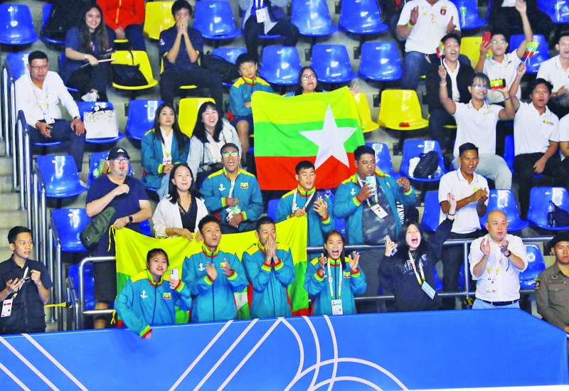 (၃၃) ကြိမ်မြောက် အရှေ့တောင် အာရှအားကစားပြိုင်ပွဲကို ထိုင်း နိုင်ငံ ဘန်ကောက်နှင့် ချွန်ဘူရီမြို့ တို့တွင် ကျင်းပပြုလုပ်လျက်ရှိပြီး မြန်မာအသင်းအနေဖြင့် စက်ဘီး၊ မြားပစ်၊ သေနတ်ပစ်၊ ဘိုးလင်း၊ ဘိလိယက်နှင့် စနူကာ၊ ကဘာဒီ၊ ပိုက်ကျော်ခြင်း၊ ဖူဆယ်၊ မွေ၊ လက်ဝှေ့၊ ကစ်ဘောက်ဆင်၊ ပြေးခုန်ပစ်၊ E-sports ၊ စစ်တုရင်၊ စားပွဲတင်တင်းနစ်၊ အပြည်ပြည် ဆိုင်ရာ လှေ၊ ရွက်လှေနှင့် အလေးမပြိုင်ပွဲများ၌ ဝင်ရောက်ယှဉ်ပြိုင်ခဲ့ရာ ယနေ့နံနက်ပိုင်းတွင် မြန်မာနိုင်ငံ အိုလံပစ်ကော်မတီအထွေထွေအတွင်းရေးမှူးအား ကစားနှင့်လူငယ်ရေးရာဝန်ကြီးဌာန ဒုတိယဝန်ကြီး ဦးထိန်လင်း၊ ပို့ဆောင်ရေးနှင့်ဆက်သွယ်ရေးဝန်ကြီးဌာန ဒုတိယဝန်ကြီး ဦးအောင်ကျော်ထွန်း၊ မြန်မာ အားကစားအဖွဲ့ခေါင်းဆောင်နှင့် အုပ်ချုပ်မှုအဖွဲ့ဝင်များ၊ မြန်မာ အားကစားအဖွဲ့ချုပ်ဥက္ကဋ္ဌများနှင့် တာဝန်ရှိသူများ တက်ရောက်ကြည့်ရှုအားပေးသည်။