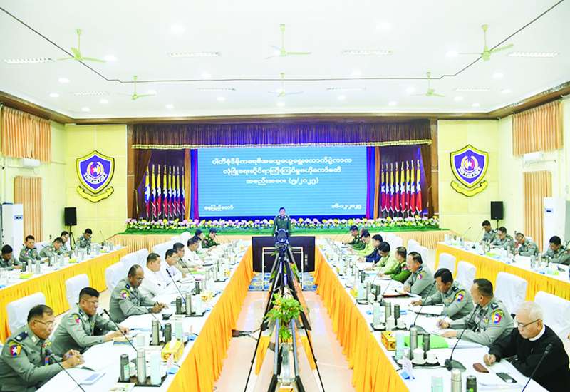 ပါတီစုံဒီမိုကရေစီ အထွေထွေရွေးကောက်ပွဲကာလ လုံခြုံရေးဆိုင်ရာ ကြီးကြပ်မှုဗဟိုကော်မတီ အစည်းအဝေး (၅/၂၀၂၅)ကို ယနေ့မွန်းလွဲပိုင်းတွင် မြန်မာနိုင်ငံရဲတပ်ဖွဲ့ဌာနချုပ် အရိန္ဒမာခန်းမ၌ကျင်းပသည်။