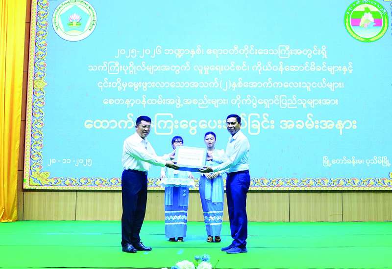 ၂၀၂၅-၂၀၂၆ ဘဏ္ဍာနှစ်အတွက် ဧရာဝတီတိုင်းဒေသကြီးအတွင်းရှိ အသက် ၈၅ နှစ်နှင့်အထက် သက်ကြီးပုဂ္ဂိုလ်များအား လူမှုရေးပင်စင်နှင့် ကိုယ်ဝန်ဆောင်မိခင်များနှင့် ၎င်းတို့မှမွေးဖွားလာသော အသက်နှစ်နှစ်အောက် ကလေးသူငယ်များ၊ စေတနာ့ဝန်ထမ်းအဖွဲ့အစည်းများ၊ တိုက်ပွဲရှောင်ပြည်သူများအား ထောက်ပံ့ငွေပေးအပ်ပွဲကို ပုသိမ်မြို့ မြို့တော်ခန်းမ၌ ကျင်းပသည်။