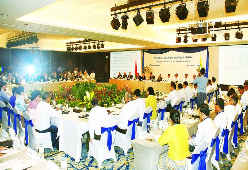 မြန်မာနှင့် ဘယ်လာရုစ်နှစ်နိုင်ငံအကြား စီးပွားရေးနှင့် ရင်းနှီးမြှုပ်နှံမှုလုပ်ငန်းများ တိုးမြှင့်ဆောင်ရွက်နိုင်ရေးအတွက် နှစ်နိုင်ငံကုန်သည်စက်မှုအသင်းများဖြစ်ကြသော UMFCCI နှင့် BelCCI တို့ပူးပေါင်း၍ မြန်မာ-ဘယ်လာရုစ် စီးပွားရေးဖိုရမ်ကို ယနေ့နံနက်ပိုင်းတွင် ရန်ကုန်မြို့ LOTTEE ဟိုတယ်၌ ကျင်းပသည်။