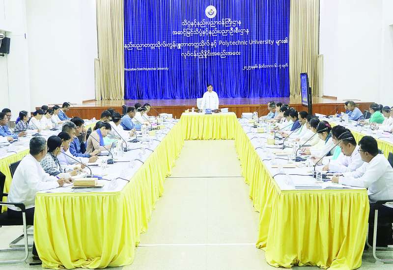 သိပ္ပံနှင့် နည်းပညာဝန်ကြီးဌာန၊ အဆင့်မြင့်သိပ္ပံနှင့် နည်းပညာဦးစီးဌာနရှိ နည်းပညာတက္ကသိုလ်၊ ကွန်ပျူတာတက္ကသိုလ်နှင့် Poly-technic University များ၏ လုပ်ငန်းညှိနှိုင်းဆွေးနွေးပွဲကို ယနေ့နံနက်ပိုင်းက Naypyitaw State Polytechnic University အစည်းအဝေးခန်းမ၌ Hybrid စနစ်ဖြင့် ကျင်းပသည်။