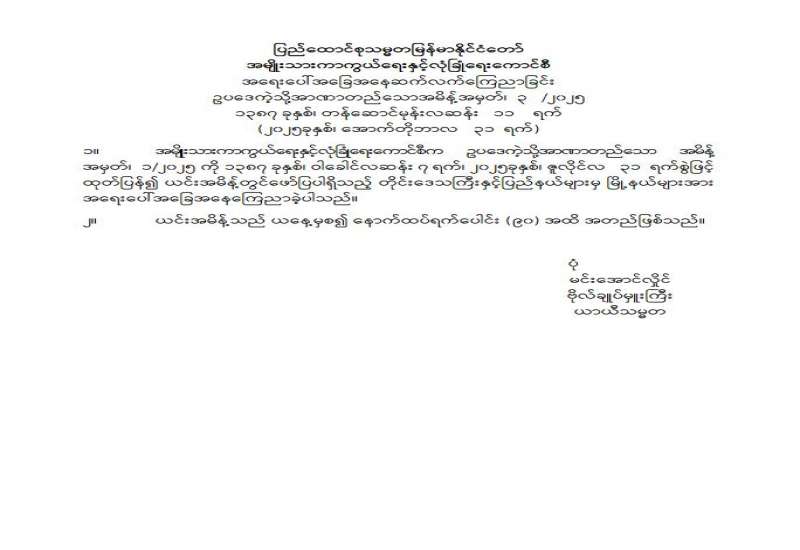 ရန်ကုန်မြို့နှင့် မန္တလေးမြို့အတွက် ရည်ညွှန်းလက်ကားဈေးနှုန်းများနှင့် ပြည်ထောင်စုနယ်မြေနေပြည်တော်၊ တိုင်းဒေသကြီး/ပြည်နယ် မြို့တော်များအတွက် ရည်ညွှန်းလက်လီဈေးနှုန်းများ