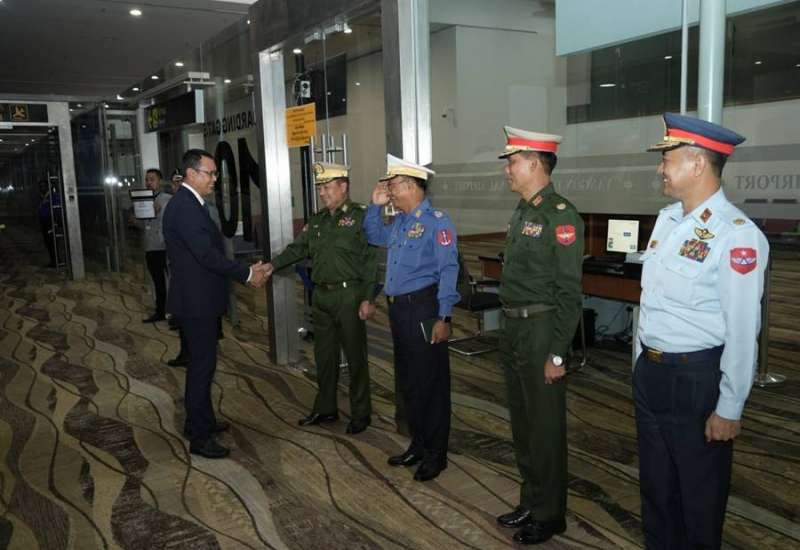 မြန်မာ့တပ်မတော် (ရေ) နှင့် ရုရှားရေတပ်နှစ်ရပ်အကြား ချစ်ကြည်ရင်းနှီးမှုနှင့် ပူးပေါင်းဆောင်ရွက်မှုများ ပိုမိုမြှင့်တင်နိုင်ရန် ရုရှားရေတပ်ဦးစီးချုပ် ဗိုလ်ချုပ်ကြီး Aleksandr A.Moiseev ၏ ဖိတ်ကြားချက်အရ အောက်တိုဘာ ၁၉ ရက်တွင် ရုရှားဖက်ဒရေးရှင်းနိုင်ငံသို့ ချစ်ကြည်ရေးခရီးသွားရောက်ခဲ့သည့် ကာကွယ်ရေးဦးစီးချုပ် (ရေ) ဗိုလ်ချုပ်ကြီးထိန်ဝင်း ဦးဆောင်သော တပ်မတော် (ရေ) ကိုယ်စားလှယ်အဖွဲ့သည် အောက်တိုဘာ ၂၇ ရက်၊ နံနက်ပိုင်းတွင် ရန်ကုန်မြို့သို့ လေကြောင်းခရီးဖြင့် ပြန်လည်ရောက်ရှိလာရာ ရန်ကုန်တိုင်းစစ်ဌာနချုပ်တိုင်းမှူး ဗိုလ်ချုပ်ပြည့်စုံလင်းနှင့် တပ်မတော်အရာရှိကြီးများ၊ မြန်မာနိုင်ငံအခြေစိုက် ရုရှားစစ်သံမှူး Colonel KURCHENKO Sergey Semenovich နှင့်တာဝန်ရှိသူများက ရန်ကုန်အပြည်ပြည်ဆိုင်ရာလေဆိပ်၌ ကြိုဆိုနှုတ်ဆက်ကြသည်။