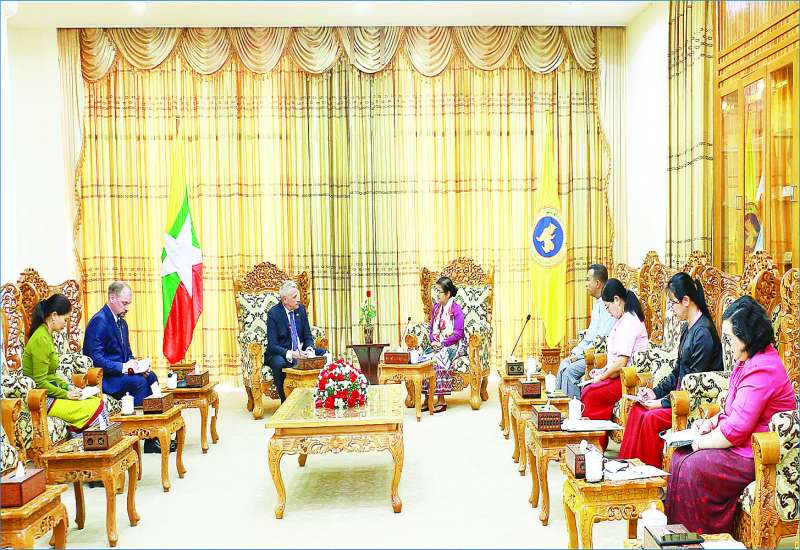 မြန်မာနိုင်ငံတော်ဗဟိုဘဏ်ဥက္ကဋ္ဌ ဒေါ်သန်းသန်းဆွေသည် ဟနွိုင်းမြို့အခြေစိုက် ဘယ်လာရုစ်သံရုံးမှ သံအမတ်ကြီး H.E. Mr.Uladzimir Baravikou နှင့် အဖွဲ့အား ယနေ့နံနက် ၁၀ နာရီခွဲတွင် နေပြည်တော်ရှိ မြန်မာနိုင်ငံတော်ဗဟိုဘဏ် အစည်းအဝေးခန်းမ၌ လက်ခံတွေ့ဆုံသည်။