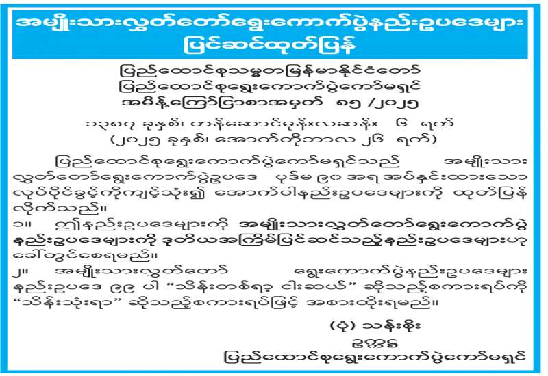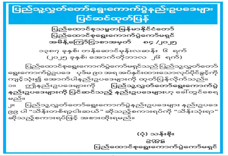 ပြည်သူ့လွှတ်တော်ရွေးကောက်ပွဲနည်းဥပဒေများ ပြင်ဆင်ထုတ်ပြန်