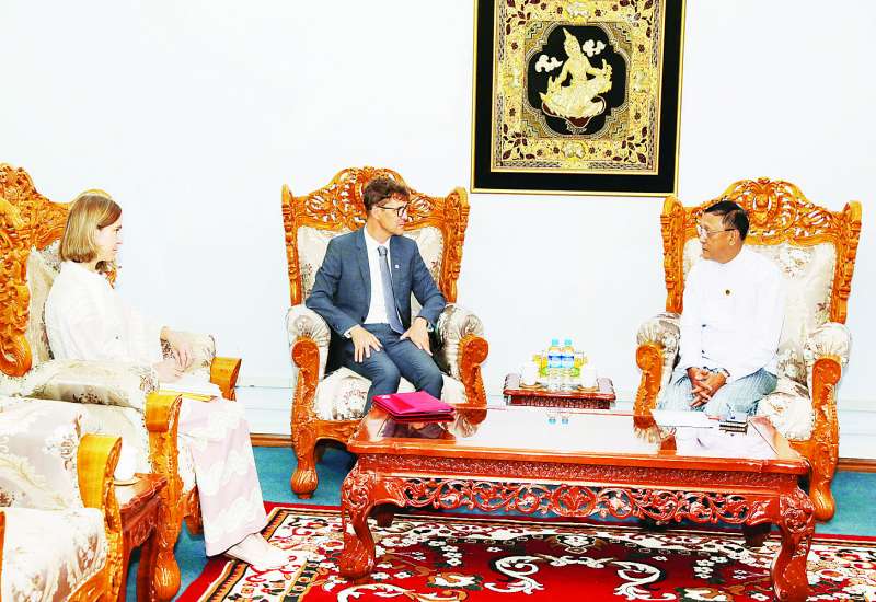 နိုင်ငံခြားရေးဝန်ကြီးဌာန ပြည်ထောင်စုဝန်ကြီးဦးသန်းဆွေသည် မြန်မာနိုင်ငံဆိုင်ရာ ကုလသမဂ္ဂယာယီဌာနေ ညှိနှိုင်းရေးမှူးနှင့် လူသားချင်းစာနာထောက်ထားမှုဆိုင်ရာ ယာယီညှိနှိုင်းရေးမှူးဖြစ်သူ Ms.Gwyn Lewis အား ယနေ့နံနက် ၁၀ နာရီတွင် နေပြည်တော်ရှိ နိုင်ငံခြားရေးဝန်ကြီးဌာန၌ လက်ခံတွေ့ဆုံသည်။