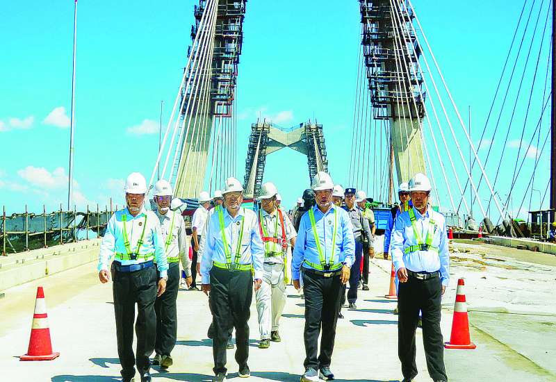 မွန်ပြည်နယ်အတွင်းတည်ဆောက်လျက်ရှိသည့် တံတားလုပ်ငန်းများကို ယမန်နေ့က ဆောက်လုပ်ရေးဝန်ကြီးဌာန ဒုတိယဝန်ကြီး ဦးမျိုးမြင့်သည် ပြည်နယ်လမ်းပန်းဆက်သွယ်ရေးဝန်ကြီး ဦးတင်စန်းနိုင်နှင့်အတူ သွားရောက်ကြည့်ရှုစစ်ဆေးသည်။