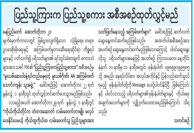 ပြည်သူ့ကြားက ပြည်သူ့စကားအစီအစဉ်ထုတ်လွှင့်မည်