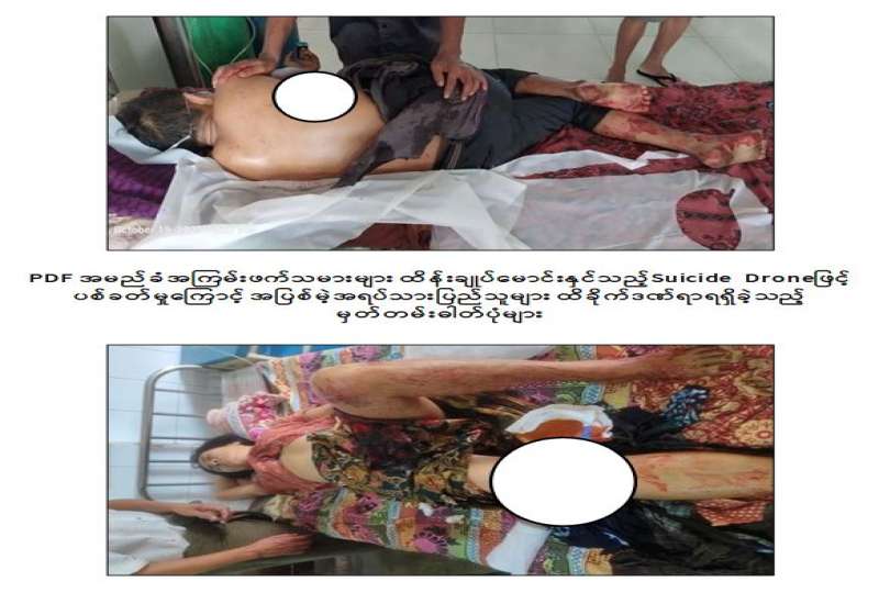 PDF အမည်ခံ အကြမ်းဖက်သမားများသည် ၎င်းတို့၏ကိုယ်ကျိုးစီးပွားနှင့် အစွန်းရောက်နိုင်ငံရေးခံယူချက်များအတွက် နိုင်ငံတော်တာဝန်ကိုထမ်းဆောင်နေကြသည့် နိုင်ငံ့ဝန်ထမ်းများနှင့် အေးချမ်းစွာနေထိုင်နေကြသည့် ပြည်သူလူထုအား လက်နက်အားကိုးဖြင့် ဖမ်းဆီး၊ နှိပ်စက်၊ သတ်ဖြတ်ခြင်း၊ လမ်းတံတားများအား မိုင်းထောင်ဖောက်ခွဲဖျက်ဆီးခြင်းတို့ကို ဆင်ခြင်တုံတရားမဲ့စွာ လုပ်ဆောင်လျက်ရှိကြရာ ယနေ့နံနက်ပိုင်းတွင်လည်း ၎င်းတို့ထိန်းချုပ်မောင်းနှင်ပြီး အကြောင်းမဲ့ပစ်ခတ်ခဲ့သည့် Suicide Drone ကျရောက်ပေါက်ကွဲမှုကြောင့် စစ်ကိုင်းတိုင်းဒေသကြီး၊ ကလေးမြို့၊ ပင်လုံရပ်ကွက်ရှိ ဒေသခံပြည်သူ အမျိုးသား ၁ ဦးနှင့် အမျိုးသမီး ဗုံးစထိမှန်ဒဏ်ရာများရရှိခဲ့ကြောင်း သိရှိရသည်။
