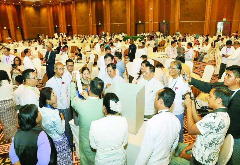 တစ်နိုင်ငံလုံး ပစ်ခတ်တိုက်ခိုက်မှုရပ်စဲရေး သဘောတူစာချုပ်(NCA)(၁၀)နှစ်ပြည့် နှစ်ပတ်လည်နေ့အထိမ်းအမှတ် အစီအစဉ်အဖြစ် “ငြိမ်းချမ်းသော မြန်မာ့အနာဂတ်တည်ဆောက်ခြင်း” အလုပ်ရုံဆွေးနွေးပွဲတတိယနေ့ကို နေပြည်တော်ရှိ မြန်မာအပြည်ပြည်ဆိုင်ရာ ကွန်ဗင်းရှင်း ဗဟိုဌာန(၁) ကျောက်စိမ်းခန်းမ၌ ကျင်းပသည်။