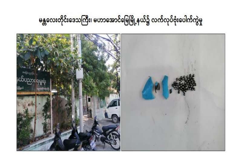 PDFအမည်ခံအကြမ်းဖက်သမားများအနေဖြင့် အနာဂတ် လူငယ်၊ လူရွယ်များ ပညာရည် မြင့်မားရေးအတွက် ဆောင်ရွက်ပေးလျက်ရှိသော ပညာရေးဆိုင်ရာရုံး/ဌာနများနှင့် စာသင်ကျောင်း များကို မိုင်းထောင် ဖောက်ခွဲခြင်းများ၊ လက်ပစ်ဗုံးများ၊ လက်လုပ်မိုင်းများဖြင့် ပစ်ပေါက်ဖောက်ခွဲ ခြင်းများ လုပ်ဆောင်လျက်ရှိရာ ဇန်နဝါရီ ၇ ရက် နံနက် ၁၀ နာရီခွဲခန့်တွင် မန္တလေးတိုင်းဒေသကြီး၊ မဟာအောင်မြေမြို့နယ်၊ ရတနာဘုမ္မိအရှေ့ရပ်ကွက်၊ (၃၆)လမ်းရှိ မြို့နယ်ပညာရေးမှူးရုံးအား ဆိုင်ကယ်မောင်းနှင်လာသည့် အကြမ်းဖက်သူ အမျိုးသား ၂ ဦးက လက်လုပ်ဗုံးဖြင့် ပစ်ပေါက် ထွက်ပြေးသွားခဲ့ခြင်းကြောင့် ပေါက်ကွဲမှုဖြစ်ပွားခဲ့ပြီး အသုံးအဆောင် ပစ္စည်းအချို့ ပျက်စီးခဲ့သည်။