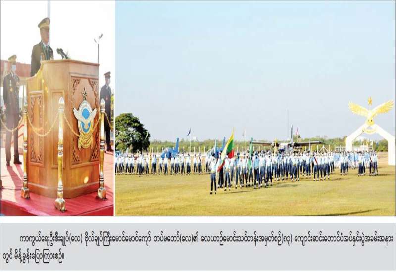 တပ်မတော်(လေ)၏ လေယာဉ်မောင်းသင်တန်း အမှတ်စဉ်(၈၃) ကျောင်းဆင်းတောင်ပံအပ်နှင်းပွဲအခမ်းအနားကို ယနေ့နံနက်ပိုင်းတွင် မိတ္ထီလာမြို့၌ ကျင်းပရာ နိုင်ငံတော်စီမံအုပ်ချုပ်ရေးကောင်စီဥက္ကဋ္ဌ တပ်မတော်ကာကွယ်ရေးဦးစီးချုပ် ဗိုလ်ချုပ်မှူးကြီး မင်းအောင်လှိုင် ကိုယ်စား ကာကွယ်ရေးဦးစီးချုပ်(လေ) ဗိုလ်ချုပ်ကြီး မောင်မောင်ကျော် တက်ရောက်မိန့်ခွန်းပြောကြားသည်။