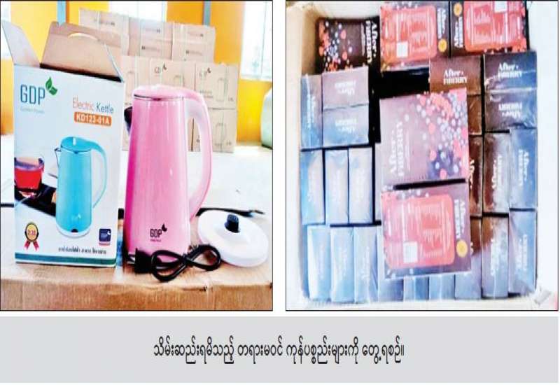 တရားမဝင်ကုန်သွယ်မှု တိုက်ဖျက်ရေးဦးဆောင်ကော်မတီ၏ ကြီးကြပ်ကွပ်ကဲမှုဖြင့် တရားမဝင် ကုန်သွယ်မှုများကို ဥပဒေနှင့်အညီ ထိရောက်စွာ တားဆီးအရေးယူနိုင်ရေး ဆောင်ရွက်လျက်ရှိပြီး ဇန်နဝါရီ ၄ ရက်တွင် ကော့ကရိတ်(တံတားကျိုး) စုပေါင်းစစ်ဆေးရေးစခန်း၌ မြဝတီမှ ရန်ကုန်သို့ သွားရောက်မည့် မော်တော်ယာဉ်များကို စစ်ဆေးခဲ့ရာ စာရွက်စာတမ်း အထောက်အထား တင်ပြနိုင်ခြင်း မရှိသည့် လျှပ်စစ်ရေနွေးအိုး (၄၀၀)၊ ခန့်မှန်းတန်ဖိုး ငွေကျပ်(၅၈၀,၀၀၀/-)ကို စစ်ဆေးတွေ့ရှိရသဖြင့် သိမ်းဆည်း၍ အမှုဖွင့်လှစ်ဆောင်ရွက်ခဲ့သည်။