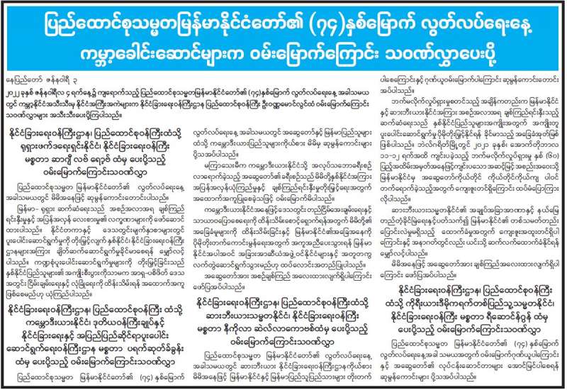 နိုင်ငံတစ်နိုင်ငံတွင် လွတ်လပ်ရေးဆုံးရှုံးရသည်ထက် ကြီးမားသည့်ဆုံးရှုံးမှုမရှိသောကြောင့် မိမိတို့နိုင်ငံ၏ အချုပ်အခြာအာဏာ တည်တံ့ခိုင်မြဲရေးအတွက် နိုင်ငံသားအားလုံးတွင် ထိန်းသိမ်းစောင့်ရှောက်ရန် အပြည့်အဝတာဝန်ရှိ