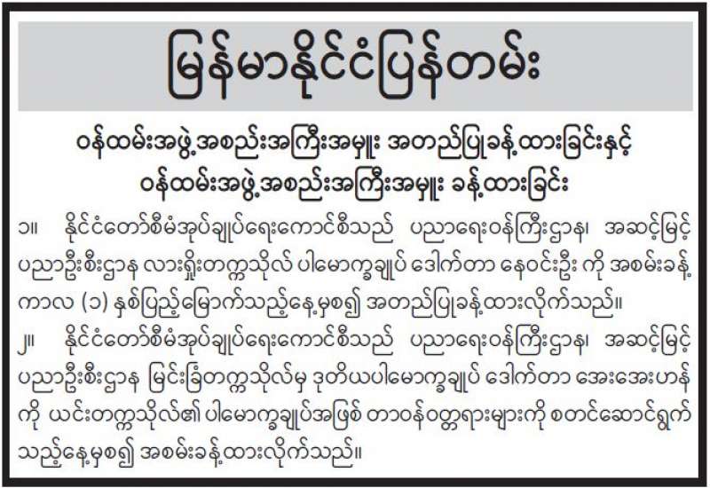 (၂၉-၁၂-၂၀၂၁) ရက်နေ့၊ ည (၈:၀၀) နာရီ ကျန်းမာရေးဝန်ကြီးဌာနအနေဖြင့် နိုင်ငံအတွင်း ကူးစက်ဖြစ်ပွားနေသော COVID-19 ရောဂါ ကာကွယ်၊ ကုသ၊ ထိန်းချုပ်ရေး လုပ်ငန်းများကိုအရှိန်အဟုန်မြှင့်ဆောင်ရွက်လျက်ရှိရာ ရောဂါထိန်းချုပ်ရေးလုပ်ငန်းများ အောင်မြင်နိုင်ရေးအတွက် ပြည်သူလူထု အနေဖြင့် ကျန်းမာရေးဝန်ကြီးဌာနမှ ထုတ်ပြန်ထားသော COVID-19 ရောဂါကာကွယ်ထိန်းချုပ်ရေးဆိုင်ရာ စည်းကမ်းများကို စနစ်တကျ လိုက်နာဆောင်ရွက်ရန်လိုအပ်ပြီး COVID-19 ကာကွယ်ဆေး ထိုးနှံမှုခံယူခြင်းအား အထူးဂရုပြု ပူးပေါင်းဆောင်ရွက် ကြရန်လိုအပ်ပါသည်။