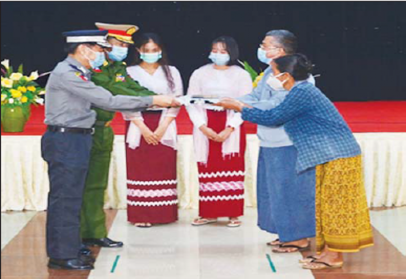 ဒီဇင်ဘာလ ၁၅ ရက်တွင် စစ်ကိုင်းတိုင်းဒေသကြီး၊ တန့်ဆည်မြို့နယ်၊ ဒေါင့်ကြီးကျေးရွာ၌ PDF အမည်ခံ အကြမ်းဖက်သူများ၏ ရက်ရက်စက်စက် လူမဆန်စွာ သတ်ဖြတ်မှုကြောင့် သေဆုံးခဲ့သူ ဒေါ်ဂျမ်းတောနှင့် ဒေါ်ခင်ဆွေမြင့်တို့၏ ငွေကြေးနှင့် လက်ဝတ်ရတနာများအား လုံခြုံရေးတပ်ဖွဲ့ဝင်များက သွားရောက်ရှာဖွေပေးခဲ့ပြီး မိသားစုဝင်များထံ ပြန်လည်အပ်နှံသည့် အခမ်းအနားကို ယနေ့နံနက်ပိုင်းတွင် နေပြည်တော်ရှိ ရုံးအမှတ် (၃၄)၊ စီမံကိန်းနှင့် ဘဏ္ဍာရေး ဝန်ကြီးဌာန အစည်းအဝေးခန်းမ၌ ကျင်းပပြုလုပ်သည်။