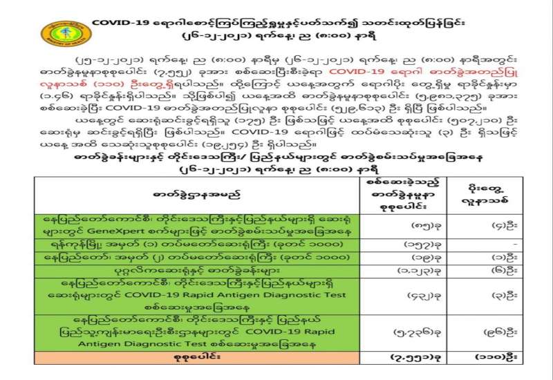 တိုင်းဒေသကြီးနှင့် ပြည်နယ်အသီးသီးတို့၌ သံဃာတော်များ၊ သာသနာနွယ်ဝင်သီလရှင်များ၊ ဘာသာရေးခေါင်းဆောင်များအပါအဝင် လူမျိုးမရွေး ဘာသာမရွေး အသက် ၄၀ နှစ်အထက် ဒေသခံပြည်သူများ၊ အကျဉ်းသား၊ အကျဉ်းသူများ၊ မသန်စွမ်းသူများ၊ တိုင်းရင်းသားလက်နက်ကိုင်အဖွဲ့များ၊ နာတာရှည်ရောဂါအခံရှိ သူများ၊ ကယ်ဆယ်ရေးစခန်းများ၊ ယာယီတိုက်ပွဲရှောင်စခန်းများအတွင်းရှိ ပြည်သူများ၊ အသက်(၁၂)နှစ်အထက် အခြေခံပညာအလယ်တန်းနှင့် အထက်တန်းအဆင့် ကျောင်းသား၊ ကျောင်းသူများစသည့် ဦးတည်အုပ်စုများသတ်မှတ်၍ တပ်မတော်မှ ဆေးအဖွဲ့များ၊ ပြည်သူ့ဆေးရုံများမှ ဆရာဝန်များ၊ သူနာပြုများ၊ ကျန်းမာရေးဝန်ထမ်းများနှင့် စေတနာ့ဝန်ထမ်းများက ကာကွယ်ဆေးထိုးခြင်းလုပ်ငန်းများကို ဆောင်ရွက်ပေးလျက်ရှိသည်။