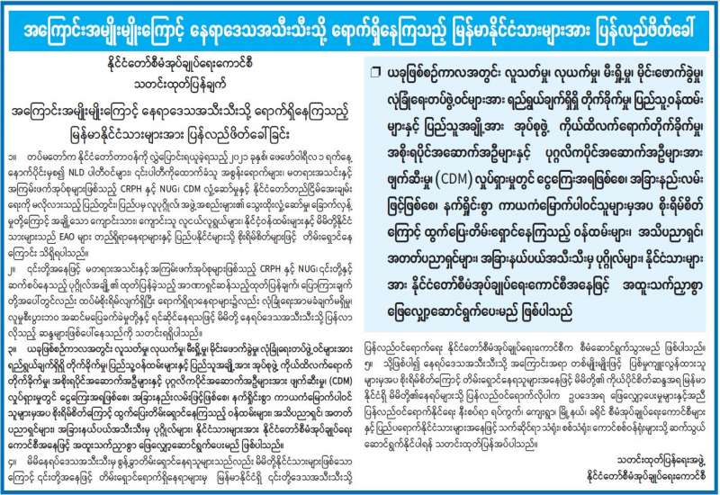 ရန်ကုန်မြို့အခြေစိုက် အနောက်နိုင်ငံများမှ သံရုံးအချို့က ကရင်ပြည်နယ်တွင် ပေါ်ပေါက်နေသည့် ပစ်ခတ်တိုက်ခိုက်မှုဖြစ်စဉ်များနှင့် ပက်သက်၍ ပူးတွဲကြေညာချက်ထုတ်ပြန်ခဲ့ခြင်းနှင့် စပ်လျဉ်း၍ နိုင်ငံခြားရေးဝန်ကြီးဌာနက သက်ဆိုင်ရာသံရုံးများသို့ သံတမန်စာ ပေးပို့သတိပေးခြင်းနှင့် ထုတ်ပြန်ကြေညာချက်ကို ကန့်ကွက်ခြင်းတို့ ပြုလုပ်ခဲ့သည်။ အဆိုပါသံရုံးများက ပူးတွဲထုတ်ပြန်ခဲ့သည့် ကြေညာချက်ပါ စိစစ်အတည်ပြုနိုင်ခြင်းမရှိသော အချက်အလက်များနှင့် စွပ်စွဲမှုများက သက်ဆိုင်ရာအိမ်ရှင်နိုင်ငံ၏ ပြည်တွင်းရေးကို ဝင်ရောက်စွက်ဖက် ရာရောက်ခြင်းကြောင့် ယခုကဲ့သို့ သတိပေး ကန့်ကွက်ချက်ထွက်ပေါ်လာခြင်းပင် ဖြစ်သည်။