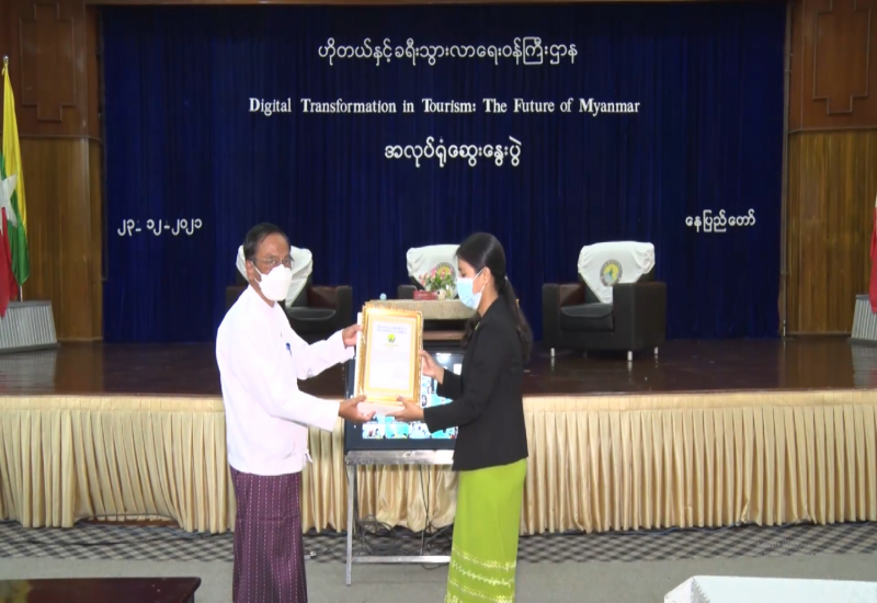 Digital Transformation in Tourism: The Future of Myanmar ခေါင်းစဉ်ဖြင့် ပြုလုပ်သောအလုပ်ရုံဆွေးနွေးပွဲကို ယနေ့နံနက်ပိုင်းတွင် ဟိုတယ်နှင့် ခရီးသွားလာရေးဝန်ကြီး ဌာန ကျောက်စိမ်းခန်းမ၌ ဗီဒီယိုကွန်ဖရင့်စနစ်ဖြင့် ကျင်းပသည်။