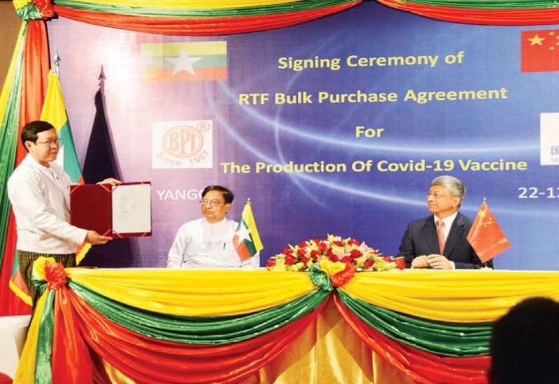 Sinopharm ကိုဗစ်-၁၉ ရောဂါကာကွယ်ဆေးကို မြန်မာနိုင်ငံတွင် ဝယ်ယူထုတ်လုပ်ရန် သဘောတူ စာချုပ်လက်မှတ်ရေးထိုးပွဲ အခမ်းအနားကို ယနေ့ညနေပိုင်းတွင် ရန်ကုန်တိုင်းဒေသကြီး မရမ်းကုန်းမြို့နယ်ရှိ Lotte Hotel ၌ ကျင်းပသည်။