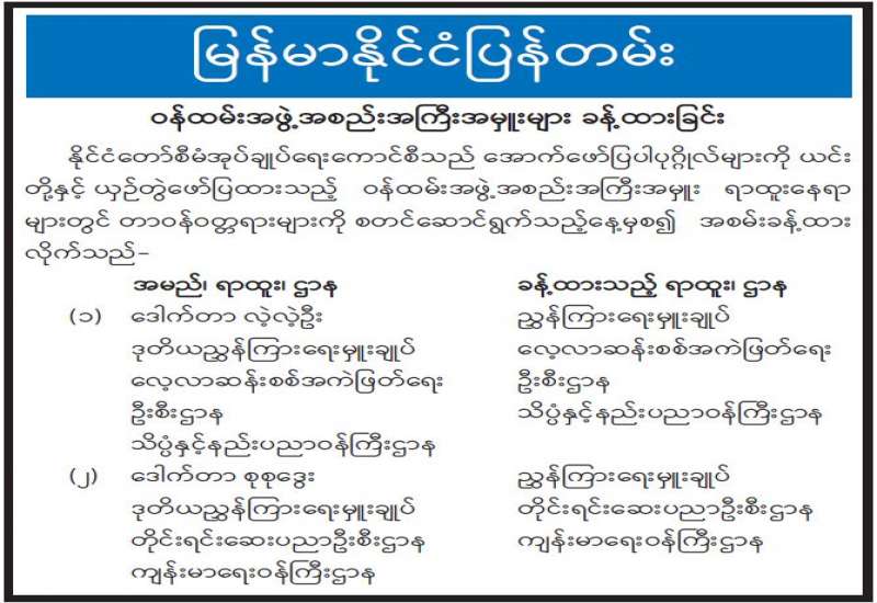 ပြည်ထောင်စုရာထူးဝန်အဖွဲ့၏ ကြီးကြပ်လမ်းညွှန်မှုဖြင့် ဗဟိုဝန်ထမ်းတက္ကသိုလ် (အထက် မြန်မာပြည်) တွင် ဝန်ထမ်းအဖွဲ့အစည်း ဒုတိယအကြီးအမှူး စီမံခန့်ခွဲမှု သင်တန်းအမှတ်စဉ် (၇) နှင့် အဆင့်မြင့် အရာထမ်းစီမံခန့်ခွဲမှု သင်တန်းအမှတ်စဉ် (၈) တို့၏ သင်တန်းဆင်း အခမ်းအနားကို ယနေ့နံနက် ၉ နာရီတွင် အဆိုပါ တက္ကသိုလ်ရှိ နီလာခန်းမ၌ ကျင်းပသည်။
