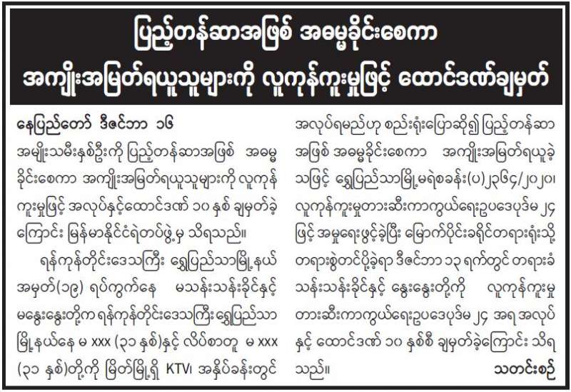 ပြည်ပနိုင်ငံများမှ ဝင်ရောက်လာသည့် မြန်မာနိုင်ငံသားများကိုနယ်စပ်ဂိတ် အသီးသီးတွင်လက်ခံဆောင်ရွက်ပေးလျက်ရှိရာ ဒီဇင်ဘာ ၁၅ ရက်တွင် ရှမ်းပြည်နယ် (မြောက်ပိုင်း)၊ မူဆယ်မြို့သို့ ပြန်လည်ဝင်ရောက်လာသူ အမျိုးသား ၉၄ ဦးနှင့် အမျိုးသမီး ၈၄ ဦး၊ စုစုပေါင်း ၁၇၈ ဦး၊ ချင်းရွှေဟော်မြို့သို့ ပြန်လည်ဝင်ရောက်လာသူ အမျိုးသား ၆ ဦးနှင့် အမျိုးသမီး ၇ ဦး၊ စုစုပေါင်း ၁၃ ဦး၊ လောက်ကိုင်မြို့သို့ ပြန်လည်ဝင်ရောက်လာသူ အမျိုးသား သုံးဦးနှင့် အမျိုးသမီး သုံးဦး၊ စုစုပေါင်း ခြောက်ဦးတို့ကို အသီးသီး လက်ခံခဲ့ကြသည်။