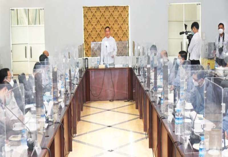 ရခိုင်ပြည်နယ်အတွင်း ဆောင်ရွက်လျက်ရှိသည့် ကိုဗစ်-၁၉ ရောဂါ ကာကွယ်၊ ထိန်းချုပ်၊ ကုသရေးဆိုင်ရာ လုပ်ငန်းညှိနှိုင်းအစည်းအဝေးကို ယနေ့တွင် စစ်တွေမြို့ရှိ ပြည်နယ်အစိုးရ အဖွဲ့ရုံးဧည့်ခန်းမ၌ ပြုလုပ်ကြရာ ရခိုင်ပြည်နယ်ဝန်ကြီးချုပ် ဒေါက်တာ အောင်ကျော်မင်း၊ အနောက်ပိုင်းတိုင်း စစ်ဌာနချုပ်တိုင်းမှူး ဗိုလ်ချုပ် ထင်လတ်ဦးနှင့် ဌာနဆိုင်ရာ တာဝန်ရှိသူများ၊ ကျန်းမာရေးဝန်ထမ်းများ တက်ရောက်ကြသည်။