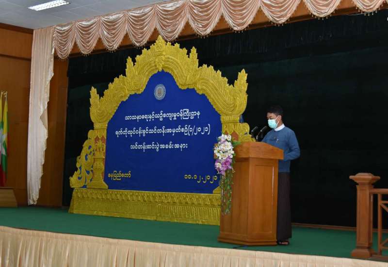 သာသနာရေးနှင့်ယဉ်ကျေးမှုဝန်ကြီးဌာနတွင် တာဝန်ထမ်းဆောင်မည့် ပြည်ထောင်စုတိုင်းရင်းသား လူငယ်များ စွမ်းရည်ဖွံ့ဖြိုးရေးဒီဂရီကောလိပ် (ရန်ကုန်၊ စစ်ကိုင်း) တို့မှ ကျောင်းဆင်း ဝန်ထမ်းများအား ဖွင့်လှစ်သင်ကြားပေးသည့် ရက်တိုလုပ်ငန်းခွင် သင်တန်းအမှတ်စဉ် (၁/၂၀၂၁) သင်တန်းဆင်းပွဲအခမ်းအနားကို ယနေ့မွန်းလွဲ ၃ နာရီတွင် သာသနာရေးနှင့်ယဉ်ကျေးမှုဝန်ကြီးဌာန၊ စုပေါင်းအစည်းအဝေးခန်းမ၌ ကျန်းမာရေးဝန်ကြီးဌာနက ထုတ်ပြန်ထားသော ကိုဗစ်-၁၉ ရောဂါ ကာကွယ်၊ ထိန်းချုပ်ရေးဆိုင်ရာ ညွှန်ကြားချက်များနှင့်အညီ ကျင်းပသည်။