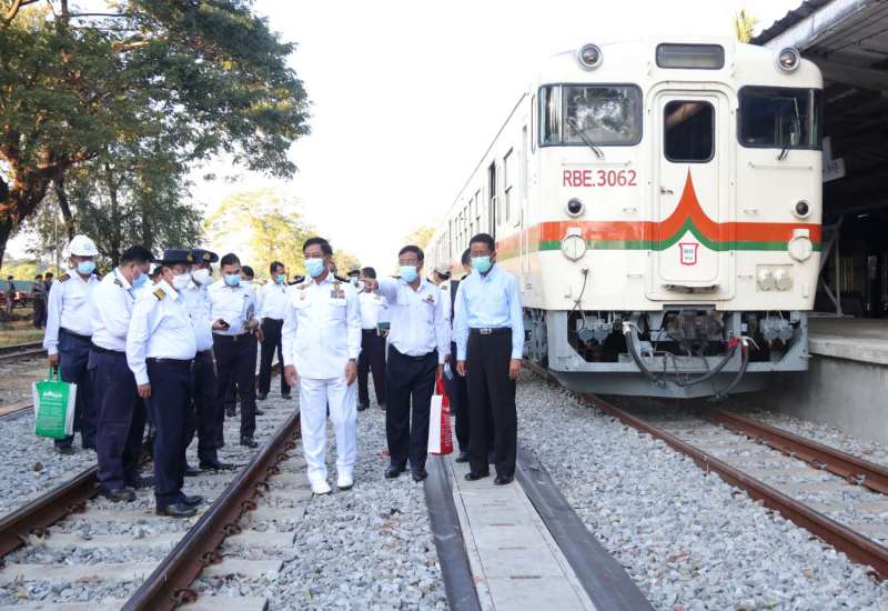 ပို့ဆောင်ရေးနှင့်ဆက်သွယ်ရေးဝန်ကြီးဌာန၊ ပြည်ထောင်စုဝန်ကြီး ဗိုလ်ချုပ်ကြီး တင်အောင်စန်း သည် ဒီဇင်ဘာ ၉ ရက်တွင် ရန်ကုန်-မန္တလေး ရထားလမ်းပိုင်းအဆင့် မြှင့်တင်ရေးစီမံကိန်း အဆင့် (၁)ဖြစ်သည့် ရန်ကုန်-တောင်ငူရထားလမ်းပိုင်း အဆင့်မြှင့်တင်ရေးစီမံကိန်း (ပြွန်တန်ဆာစီမံကိန်းရုံး)၊ စီမံကိန်းရထား လမ်းပိုင်းပြီးစီးမှု၊ တံတားတည်ဆောက်မှုနှင့် ပျဉ်ပုံကြီးဘူတာ မွမ်းမံပြင်ဆင်မှု လုပ်ငန်းခွင်များကို ကြည့်ရှု့စစ်ဆေးသည်။