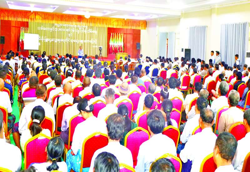 စက်မှုလုပ်ငန်းနှင့် စက်မှုဇုန်ဖွံ့ဖြိုးတိုးတက်ရေး ဗဟိုကော်မတီဥက္ကဋ္ဌ၏ လမ်းညွှန်ချက်များအား ထပ်ဆင့်ရှင်းလင်းခြင်းအခမ်းအနားကို ယနေ့မွန်းလွဲပိုင်းတွင် ရန်ကုန်တိုင်းဒေသကြီး မရမ်းကုန်းမြို့နယ် ကျိုက်ဝိုင်းရှိ အသေးစား၊ အငယ်စားနှင့် အလတ်စားလုပ်ငန်းများ ဖွံ့ဖြိုးတိုးတက်ရေးဗဟိုဌာန၌ ကျင်းပသည်။