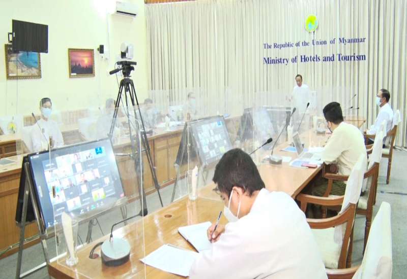 နေပြည်တော် ဥတ္တရသီရိခရိုင်နှင့် ဒက္ခိဏသီရိခရိုင်အတွင်းရှိ ဝန်ဆောင်မှု လုပ်ငန်းများဖြစ်သော ဟိုတယ်လုပ်ငန်းများ၊ ဘဏ် ဝန်ဆောင်မှုလုပ်ငန်းများနှင့် အသေးစားချေးငွေ လုပ်ငန်းများ အတွက် ဝန်ဆောင်မှုလုပ်ငန်းဆိုင်ရာ အလုပ်အကိုင်များ ကျွမ်းကျင်မှု စစ်ဆေးအကဲဖြတ်ရေး လုပ်ငန်းစဉ် နိုဝင်ဘာလအတွင်း အသိပညာပေးအစီအစဉ်ကို ယနေ့နံနက်ပိုင်းတွင် အလုပ်သမား ဝန်ကြီးဌာန၌ ဗီဒီယိုကွန့်ဖရင့်စနစ်ဖြင့် ကျင်းပရာ ဟိုတယ်နှင့်ခရီးသွား လာရေးဝန်ကြီးဌာန၊ ပြည်ထောင်စုဝန်ကြီး ဒေါက်တာ ဌေးအောင် ပါဝင်တက်ရောက်သည်။