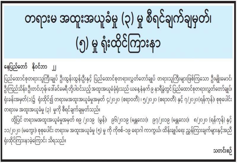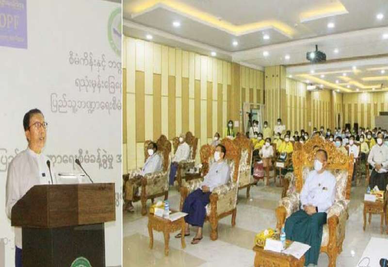 ပြည်သူ့ဘဏ္ဍာရေးစီမံခန့်ခွဲမှု အထူးမွမ်းမံသင်တန်း အမှတ်စဉ် (၁) ဖွင့်ပွဲအခမ်းအနားကို ယနေ့နံနက် ၈ နာရီခွဲ၌ စီမံကိန်းနှင့်ဘဏ္ဍာရေးဝန်ကြီးဌာနလက်အောက်ရှိ ရသုံးမှန်းခြေ ငွေစာရင်းဦးစီးဌာန၏ ပြည်သူ့ဘဏ္ဍာရေး စီမံခန့်ခွဲမှုသင်တန်းကျောင်းတွင် ကိုဗစ် -၁၉ ရောဂါ ကာကွယ်ထိန်းချုပ်ရေး စည်းကမ်းသတ်မှတ်ချက်များနှင့်အညီ ကျင်းပသည်။