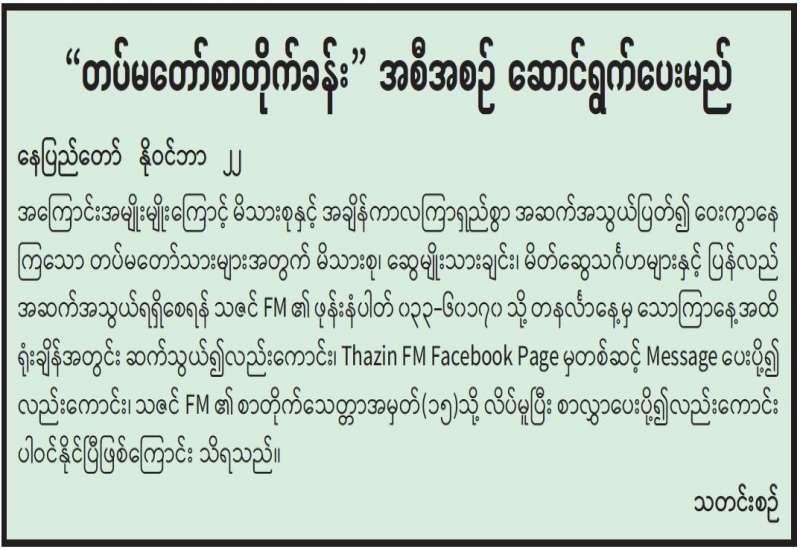 မန္တလေးမြို့ နန်းရှေ့ရှိမြမန္တလာစာပေပန်းခင်း စာကြည့်တိုက်သို့ ရှားပါး သုတ၊ ရသ စာအုပ်လှူဒါန်းပွဲကို နိုဝင်ဘာ ၂၁ ရက် နံနက် ၁၁ နာရီက အဆိုပါ စာကြည့်တိုက်၌ ကျင်းပသည်။