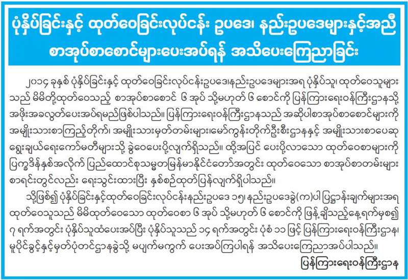 မြန်မာနိုင်ငံသားများဖြစ်ကြသည့် တိုင်းရင်းသားများနှင့် ဥပဒေအရနိုင်ငံသားများကို ဥပဒေနှင့်အညီ အိမ်ထောင်စုလူဦးရေစာရင်းနှင့် ကိုင်ဆောင်သင့်သည့် ကတ်ပြားတစ်မျိုးမျိုး ထုတ်ပေးရေး လုပ်ငန်း ဖြစ်သည့် ပန်းခင်းစီမံချက် အကောင်အထည်ဖော်ဆောင်ရွက်မှုဆိုင်ရာ (၆) လပတ် လုပ်ငန်း ညှိနှိုင်းအစည်းအဝေးကို နိုဝင်ဘာ ၂ ရက်၊ ၅ ရက်၊ ၉ ရက်နှင့် ၁၂ ရက်တို့တွင် နေပြည်တော်ရှိ လူဝင်မှုကြီးကြပ်ရေးနှင့်ပြည်သူ့အင်အားဝန်ကြီးဌာန၊ အစည်း အဝေးခန်းမ၌ ကျင်းပသည်။