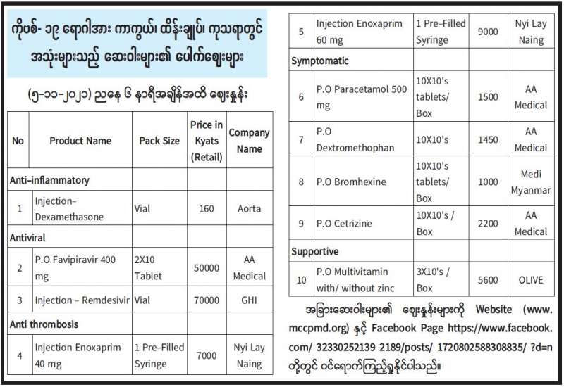 အကောက်ခွန်ဦးစီးဌာနအနေဖြင့် ကိုဗစ်-၁၉ ရောဂါ ကာကွယ်၊ထိန်းချုပ်၊ ကုသရေးပစ္စည်းများအား ရေကြောင်း၊ ဆိပ်ကမ်း၊ နယ်စပ်ဂိတ် အသီးသီးမှ နေ့စဉ်လွယ်ကူချောမွေ့စွာ စစ်ဆေးထုတ်ပေးလျက်ရှိသည်။ ထိုသို့ ထုတ်ပေးရာတွင် နိုဝင်ဘာ ၅ ရက်၌ ရန်ကုန်ဆိပ်ကမ်းများမှ Oxygen Generator သုံးခု၊ Face Mask ၁၆၃၁၀၀ နှင့် ဆေးဝါးမျိုးစုံ ၂၀ (၇၂၉၅၉ ဒသမ ၉၅) Kg၊ နယ်စပ်(ချင်းရွှေဟော်)တွင် ကုမ္ပဏီနှစ်ခုမှ Sodium Chloride Injection ၂၅၃၅၀၀၊ Glucose Injection ၉၇၄၇၀၊ Paracetamol Tablet ၁၃၄၇၀၊ lbmol Tablet ၇၈၂၀၀၊ Cimeticline Injection ၁၀၉၆၀၀၊ Vitamin C Tablet ၉၄၄၀၊ PPE ၆၃၆၀၀ တို့ကို ထုတ်ပေးခဲ့ကြောင်း သတင်းရရှိသည်။