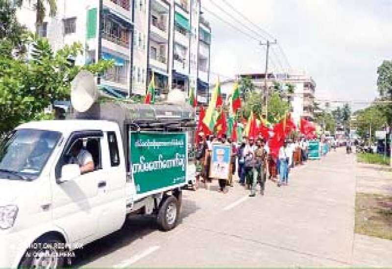 ၂၀၀၈ ခုနှစ် ဖွဲ့စည်းပုံအခြေခံဉပဒေနှင့်အညီ ဆောင်ရွက်လျက်ရှိသည့် နိုင်ငံတော် စီမံအုပ်ချုပ်ရေး ကောင်စီအား ထောက်ခံပွဲကို ယနေ့တွင် ရှမ်းပြည်နယ် (တောင်ပိုင်း)၊ တောင်ကြီးမြို့နှင့် ကွန်ဟိန်းမြို့၊ တနင်္သာရီတိုင်းဒေသကြီး၊ ပုလောမြို့နယ်၊ ရန်ကုန် တိုင်းဒေသကြီး၊ မရမ်းကုန်းမြို့နယ်၊ ဧရာဝတီတိုင်းဒေသကြီး၊ မော်လမြိုင်ကျွန်းမြို့၊ ဖျာပုံမြို့နှင့် ဘိုကလေးမြို့၊ ရခိုင်ပြည်နယ်၊ ရသေ့တောင်မြို့၊ ပဲခူးတိုင်းဒေသကြီး၊ ညောင်လေးပင်မြို့၊ ဘုရားကြီးမြို့နှင့် ကရင်ပြည်နယ်၊ သံတောင်ကြီးမြို့တို့၌ အသီးသီး ပြုလုပ်ကြပြီး ဆန္ဒဖော်ထုတ် ခဲ့ကြသည်။