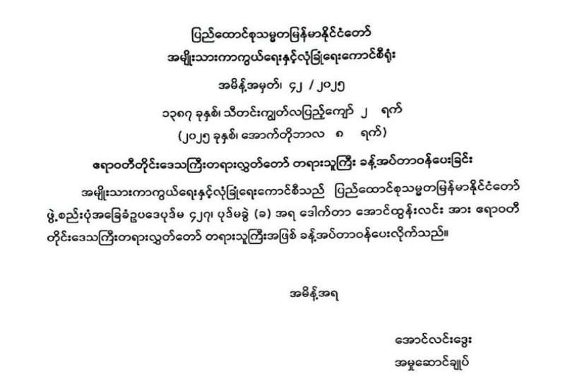 ရန်ကုန်မြို့နှင့် မန္တလေးမြို့အတွက် ရည်ညွှန်းလက်ကားဈေးနှုန်းများနှင့် ပြည်ထောင်စုနယ်မြေ နေပြည်တော်၊ တိုင်းဒေသကြီး/ပြည်နယ် မြို့တော်များအတွက် ရည်ညွှန်းလက်လီဈေးနှုန်းများ