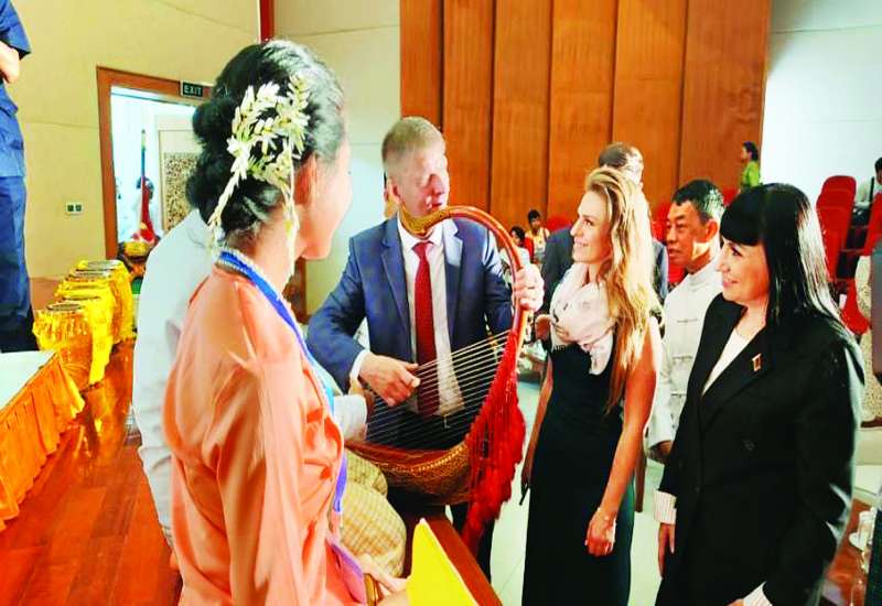 မြန်မာ - ဘယ်လာရုစ် နှစ်နိုင်ငံ ချစ်ကြည်ရေးတိုးမြှင့်နိုင်ရန်အတွက် မြန်မာနိုင်ငံ၌ ရောက်ရှိနေသည့် ဘယ်လာရုစ်နိုင်ငံမှ ဖျော်ဖြေရေးအဖွဲ့သည် ယနေ့တွင် ၂၀၂၅ ခုနှစ် (၂၆)ကြိမ်မြောက် မြန်မာ့ရိုးရာယဉ်ကျေးမှု အဆို၊ အက၊ အရေး၊ အတီး (ဗဟိုအဆင့်) ပြိုင်ပွဲကျင်းပနေမှုကို သွားရောက်ကြည့်ရှုလေ့လာကြသည်။