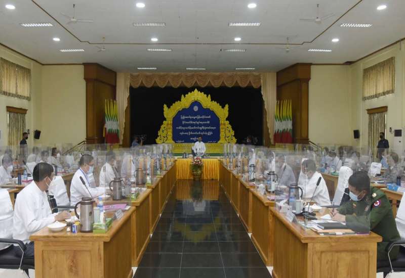 ကိုဗစ် - ၁၉ ရောဂါ ကာကွယ်၊ ထိန်းချုပ်၊ ကုသရေးဆိုင်ရာ (၁၃)ကြိမ်မြောက် ညှိနှိုင်း အစည်းအဝေးကို ယနေ့နံနက်ပိုင်းတွင် နေပြည်တော်ရှိ ဘုရင့်နောင်ရိပ်သာ အစည်းအဝေး ခန်းမ၌ ကျင်းပပြုလုပ်ရာ နိုင်ငံတော်စီမံအုပ်ချုပ်ရေးကောင်စီ ဥက္ကဋ္ဌ၊ ပြည်ထောင်စုသမ္မတ မြန်မာ နိုင်ငံတော်၊ နိုင်ငံတော်ဝန်ကြီးချုပ် ဗိုလ်ချုပ်မှူးကြီး မင်းအောင်လှိုင် တက်ရောက် အမှာစကားပြောကြားသည်။