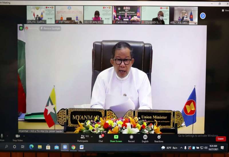 (၄၃)ကြိမ်မြောက် အာဆီယံ လယ်ယာစိုက်ပျိုးရေးနှင့် သစ်တောဆိုင်ရာဝန်ကြီးများ အစည်းအဝေးနှင့် (၂၁)ကြိမ်မြောက် အာဆီယံ အပေါင်းသုံး လယ်ယာစိုက်ပျိုးရေးနှင့် သစ်တောဆိုင်ရာဝန်ကြီးများ အစည်းအဝေးတို့ကို ယနေ့တွင် အွန်လိုင်းစနစ်ဖြင့် ကျင်းပရာ စိုက်ပျိုးရေး၊ မွေးမြူရေးနှင့်ဆည်မြောင်းဝန်ကြီးဌာန ပြည်ထောင်စုဝန်ကြီး ဦးတင်ထွဋ်ဦး တက်ရောက်ဆွေးနွေးသည်။