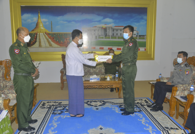 ကိုဗစ်-၁၉ ရောဂါ ကြိုတင်ကာကွယ်ရေးလုပ်ငန်းများ ဆောင်ရွက်နေသည့်ကာလ အတွင်း ဆွမ်းကိစ္စရပ်များ အဆင်ပြေစေရန်ရည်ရွယ်၍ တပ်မတော်(ကြည်း၊ရေ၊ လေ) အရာရှိ၊ စစ်သည်၊ အရာထမ်း၊ အမှုထမ်းများနှင့် စေတနာရှင်အလှူရှင်များက မြို့နယ် အသီးသီးရှိ ဘုန်းတော်ကြီး ကျောင်းများ၊ သာသနာနွယ်ဝင် သီလရှင်ကျောင်းများနှင့် ဘာသာရေးကျောင်းများသို့ ဆွမ်းဆန် တော်၊ ဆီ၊ ဆား၊ ပဲ အမယ်(၄)မျိုးနှင့် လှူဖွယ် ပစ္စည်းများလှူဒါန်းခြင်း၊ နေ့ဆွမ်းများ ဆက်ကပ်လှူဒါန်းခြင်းနှင့် ကျန်းမာရေး စစ်ဆေး ပေးခြင်းများကို ဆောင်ရွက်လျက်ရှိသည်။