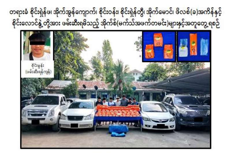 နိုင်ငံတော်အစိုးရအနေဖြင့် အနာဂတ်မျိုးဆက်သစ်လူငယ်များအပါအဝင် လူသားမျိုးနွယ်စုတစ်ခုလုံးကို အန္တရာယ်ဖြစ်စေသည့် မူးယစ်ဆေးဝါးသယ်ဆောင်ရောင်းဝယ်မှုများအား ထိရောက်စွာ တားဆီးကာကွယ်တိုက်ဖျက်ရေးကို အမျိုးသားရေးတာဝန်တစ်ရပ်အဖြစ်သတ်မှတ်၍ အရှိန်အဟုန်မြှင့်ဆောင်ရွက်လျက်ရှိရာ AA အကြမ်းဖက်သောင်းကျန်းသူအဖွဲ့က ရခိုင်ပြည်နယ်နှင့် မလေးရှားနိုင်ငံသို့ပို့ဆောင်မည့် ငွေကျပ် ၁၉၅.၈၅ ဘီလီယံခန့်တန်ဖိုးရှိ အိုက်စ် ၃၄၃၈ ကီလိုဂရမ်၊ ကတ်တမင်း ၂၁၉၈ ကီလိုဂရမ်တို့ကို ဖမ်းဆီးရမိခဲ့ကြောင်း သိရှိရသည်။