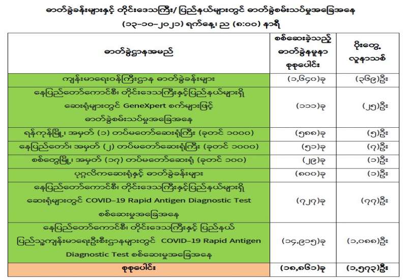 ကျန်းမာရေးဝန်ကြီးဌာနအနေဖြင့် နိုင်ငံအတွင်း ကူးစက်ဖြစ်ပွားနေသော COVID-19 ရောဂါ ကာကွယ်၊ ကုသ၊ ထိန်းချုပ်ရေးလုပ်ငန်းများကို အရှိန်အဟုန်မြှင့်ဆောင်ရွက်လျက်ရှိရာ ရောဂါထိန်းချုပ် ရေးလုပ်ငန်းများ အောင်မြင်နိုင်ရေးအတွက် ပြည်သူလူထုအနေဖြင့် -