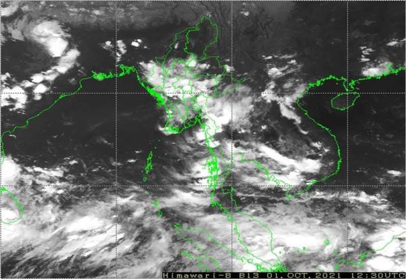 (၂၀၂၁ ခုနှစ်၊ အောက်တိုဘာလ (၁)ရက်နေ့ ည(၇:၀၀)နာရီအချိန် ထုတ်ပြန်ချက်) ဘင်္ဂလားပင်လယ်အော်အခြေအနေ။ ဘင်္ဂလားပင်လယ်အော်မြောက်ပိုင်းတွင် တိမ်အနည်းငယ် ဖြစ်ထွန်းနေပြီး၊ ကပ္ပလီပင်လယ်ပြင်နှင့် ကျန်ဘင်္ဂလားပင်လယ်အော်တို့တွင် မုတ်သုံလေ အားနည်းနေပါသည်။