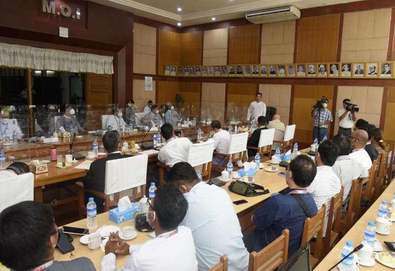 ပြန်ကြားရေးဝန်ကြီးဌာန ပြည်ထောင်စုဝန်ကြီး ဦးမောင်မောင်အုန်းသည် သတင်းစာရှင်းလင်းပွဲ အမှတ်စဉ် (၉/၂၀၂၁) သို့ တက်ရောက်လာကြသည့် ပြည်တွင်း/ ပြည်ပသတင်းမီဒီယာများအား ယနေ့ နံနက် ၁၁ နာရီတွင် အဆိုပါဝန်ကြီးဌာန အစည်းအဝေးခန်းမ၌ တွေ့ဆုံသည်။
