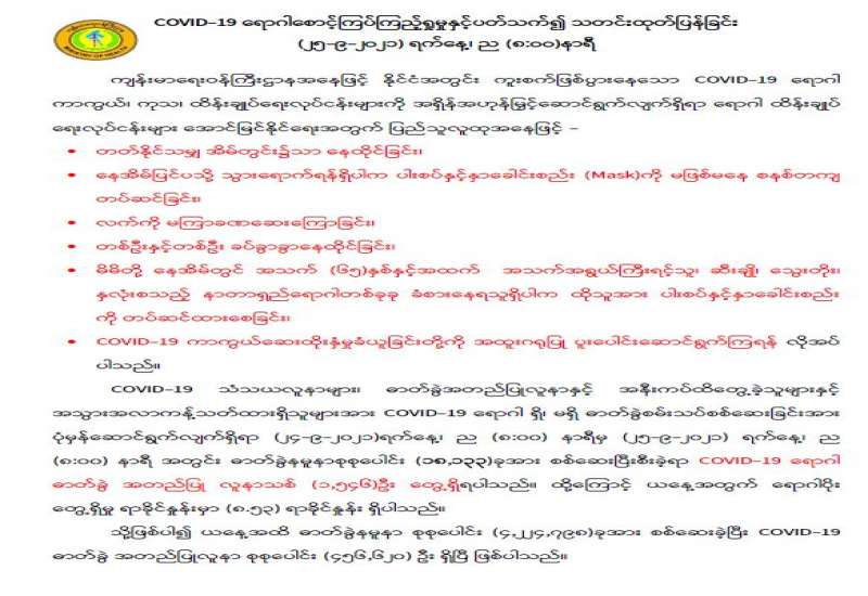 (၂၀၂၁ ခုနှစ်၊ စက်တင်ဘာလ (၂၅)ရက်နေ့ မြန်မာစံတော်ချိန်(၁၉:၀၀)နာရီအချိန်ထုတ်ပြန်ချက်)