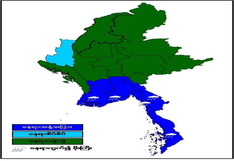 (၂၀၂၁ ခုနှစ်၊ စက်တင်ဘာလ (၂၂)ရက်နေ့ ညနေ(၄:၀၀)နာရီအချိန် ထုတ်ပြန်ချက်) ဘင်္ဂလားပင်လယ်အော်အခြေအနေ။ကပ္ပလီပင်လယ်ပြင်နှင့် ဘင်္ဂလားပင်လယ်အော် တောင်ပိုင်းတို့တွင် မုတ်သုံလေ အားကောင်းနေပြီး၊ ကျန်ဘင်္ဂလားပင်လယ်အော်တွင် မုတ်သုံလေ အားနည်းနေပါသည်။