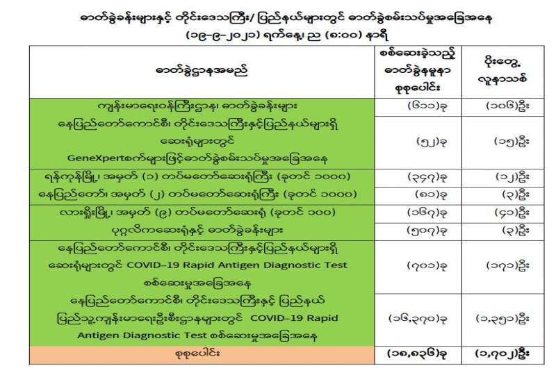 ကျန်းမာရေးဝန်ကြီးဌာနအနေဖြင့် နိုင်ငံအတွင်း ကူးစက်ဖြစ်ပွားနေသော COVID-19 ရောဂါ ကာကွယ်၊ ကုသ၊ ထိန်းချုပ်ရေး လုပ်ငန်းများကို အရှိန်အဟုန်မြှင့်ဆောင်ရွက်လျက်ရှိရာ ရောဂါ ထိန်းချုပ်ရေးလုပ်ငန်းများ အောင်မြင်နိုင်ရေးအတွက် ပြည်သူလူထု အနေဖြင့် -