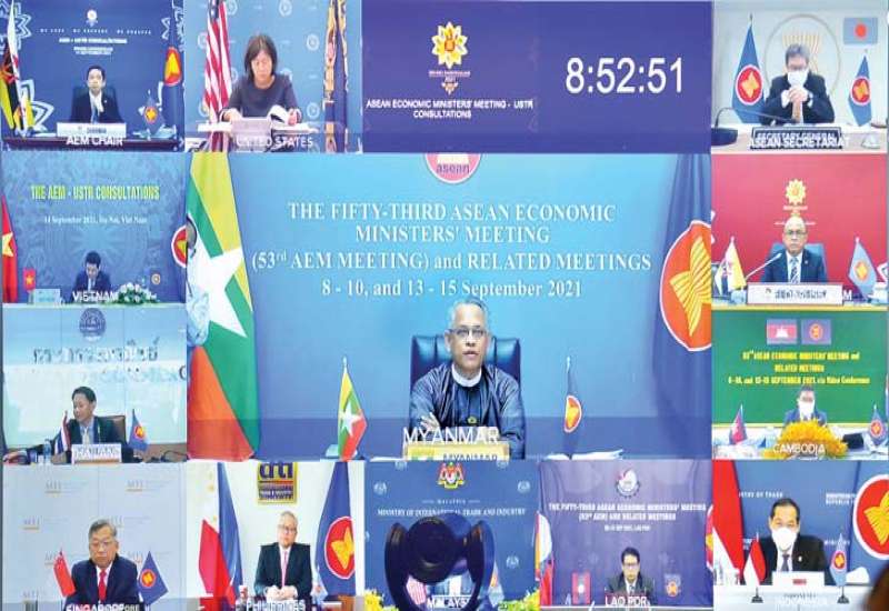 ရင်းနှီးမြှုပ်နှံမှုနှင့် နိုင်ငံခြားစီးပွားဆက်သွယ်ရေး ဝန်ကြီးဌာန ပြည်ထောင်စုဝန်ကြီး ဦးအောင်နိုင်ဦးသည် ယနေ့နံနက် ၇ နာရီမှစတင်၍ ဗီဒီယိုကွန်ဖရင့် ဖြင့်ကျင်းပသည့် အာဆီယံ စီးပွားရေးဝန်ကြီးများနှင့် အမေရိကန်ကုန်သွယ်ရေး ကိုယ်စားလှယ်တို့ အစည်းအဝေး၊ (၅) ကြိမ်မြောက် အာဆီယံ ဟောင်ကောင် (တရုတ်) စီးပွားရေးဝန်ကြီးများ အစည်းအဝေး၊ (၁၈) ကြိမ်မြောက် အာဆီယံ-အိန္ဒိယ စီးပွားရေးဝန်ကြီးများ အစည်းအဝေး၊ (၁၇) ကြိမ်မြောက် အာဆီယံစီးပွားရေးဝန်ကြီးများနှင့် အီးယူ ကုန်သွယ်ရေးကော်မရှင်နာတို့ အစည်းအဝေး နှင့် (၁၀) ကြိမ်မြောက် အာဆီယံ-ရုရှား စီးပွားရေး ဝန်ကြီးများ အစည်းအဝေးတို့ကို နေပြည်တော်ရှိ ရင်းနှီးမြှုပ်နှံမှုနှင့် နိုင်ငံခြားစီးပွားဆက်သွယ်ရေး ဝန်ကြီးဌာန ဝန်ကြီးရုံးမှ ပါဝင်တက်ရောက် သည်။